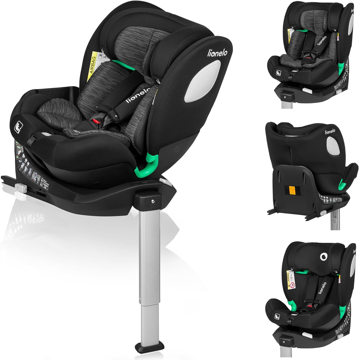 LIONELO Braam siege auto de 0 à 36 kg, jambe de force et Isofix ou ceintures de sécurité de voiture, rotation à 360 degrés face à la route ou dos à la route (Carbone Noir, BRAAM)